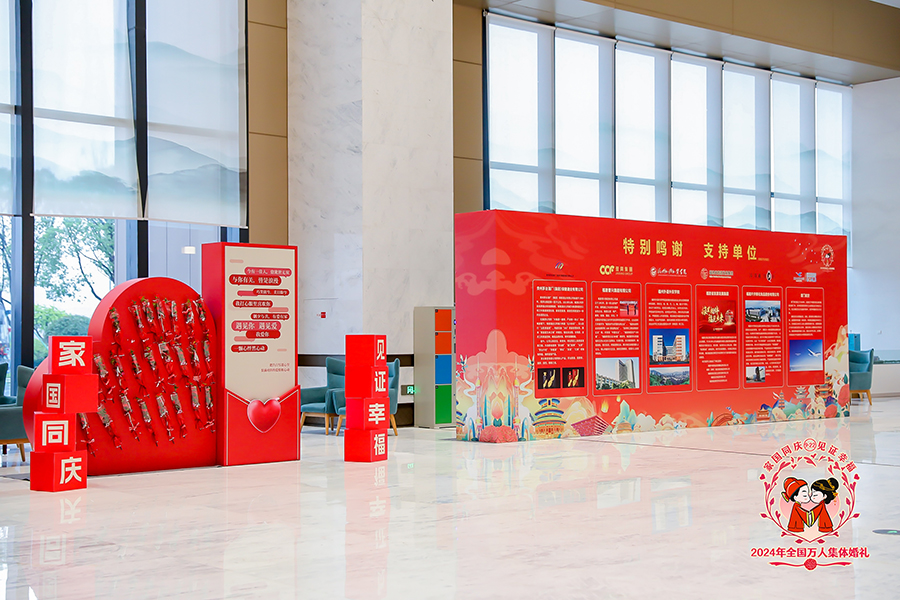 9月22日,“家國同慶 見證幸福”2024年全國萬人集體婚禮福建分會場活動在福州舉辦。來自我省各行各業(yè)各族各界的205對新人身著中式婚服,在歡快的樂曲聲中,滿懷對新生活的幸福憧憬步入集體婚禮現(xiàn)場。